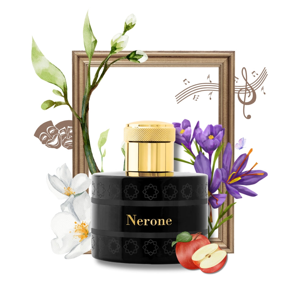 Steeped in art and genius, this fragrance evokes the magnificence of the Domus Aurea. The sweet and enveloping notes of coconut intertwine with vibrant saffron, while the juicy and bold raspberry offers a unique sensory experience. The scent of coconut manifests an exotic, almost imperial elegance. At the heart of this olfactory work, the warm and enveloping notes of cane sugar and tonka bean emerge. The essence of passion fruit adds a touch of eccentricity. The base reveals the power of oud, deep and mysterious, caressed by notes of leather.